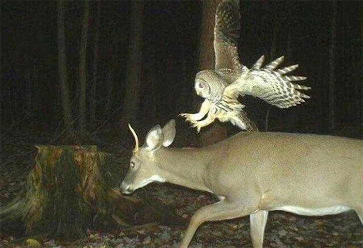 Ein Rehbock steht ruhig in der Dämmerung, als plötzlich – schwupps – eine Eule mitten auf seinem Rücken landet. War das Absicht oder bloß ein Navigationsfehler? Vielleicht wollte sie einfach nur einen Landeplatz testen oder suchte Unterhaltung. Oder hatte sie schlicht die Nase voll vom ständigen Fliegen und dachte: “Ach, ein Reh reicht als Taxi!” Immerhin brauchen auch Eulen mal ein Päuschen.