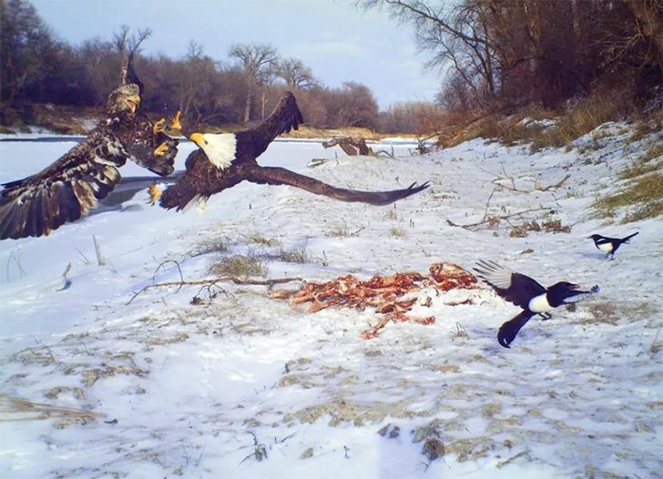Ein Schnappschuss, der sich sehen lassen kann: Zwei Adler im Flug – und mitten in einem hitzigen Streit! Dabei handelt es sich offensichtlich nicht um eine romantische Begegnung. Vielmehr sieht es so aus, als stünde ein handfester Konflikt im Mittelpunkt. Worum mag es wohl gehen? Vielleicht hat einer dem anderen die Beute vor der Nase weggeschnappt. Oder es handelt sich tatsächlich um einen Streit um die Gunst einer Adlerdame.