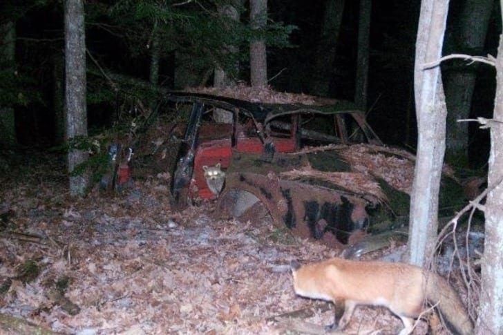 Es gibt diese seltenen Momente in der Natur, die man nur durch pures Glück festhält. So wie hier, als ein Waschbär und ein Fuchs gemeinsam vor der Kamera auftauchen. Während der Waschbär offenbar auf einen nächtlichen Snack aus war, erscheint plötzlich Herr Fuchs auf der Bildfläche.
