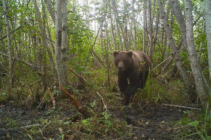 Was für ein Anblick: Ein Bär, der scheinbar in vollem Tempo durch den Wald läuft! Ob er vor etwas flüchtet oder einfach nur sein tägliches Fitnessprogramm absolviert? Schwer zu sagen. Vielleicht hat die Trailcam einfach seinen Weg gekreuzt, und er wollte nicht gestört werden.