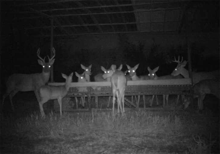 Wer hat eigentlich beschlossen, dass man nur zu festen Zeiten essen darf? Diese tierische Großfamilie hat jedenfalls beschlossen, die Nacht für eine Dinnerparty zu nutzen. Gemeinsam stehen sie am Futterplatz, knabbern genüsslich an ihrem Mitternachtssnack und werfen immer wieder vorsichtige Blicke über die Schulter.