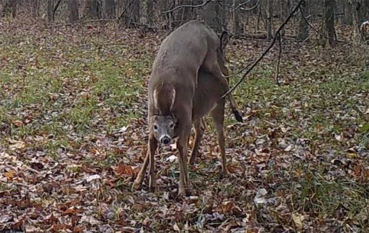 Was hier genau passiert ist? Keine Ahnung, aber wir haben da ein paar Theorien. Vielleicht haben die beiden Rehe eine Runde Verstecken gespielt – wobei das zweite Reh nicht gerade lange unsichtbar blieb. Oder war das obere Tier einfach neugierig, die Welt mal aus einer anderen Perspektive zu sehen? Vielleicht hatte es auch keine Lust mehr, weiterzulaufen, und hat sich einen Mitfahrservice organisiert.