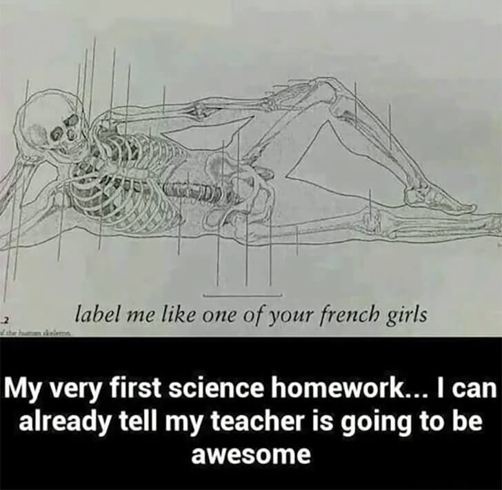 Biologie trifft Kino! Als der Lehrer die Aufgabenblätter austeilt, rechnet keiner der Schüler mit dem, was sie erwartet. Groß auf dem Papier prangt der Satz: “Beschrifte mich wie eines deiner französischen Mädchen.” Was bitte?! Gelächter breitet sich im Raum aus, denn der berühmte Titanic-Moment ist natürlich allen bekannt.