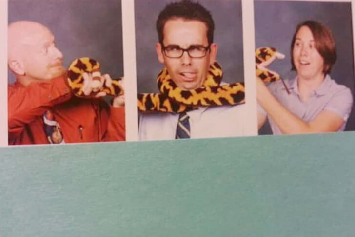 Drei furchtlose Lehrer stellen sich einer gefährlichen Bestie – zumindest sieht es so aus. Im Flur der Schule findet eine Szene statt, die jedem Fantasyfilm Ehre machen würde. Mit entschlossenem Blick und geballten Fäusten posieren die Lehrkräfte vor einer Schlange. Schüler ringsum staunen nicht schlecht: “Was geht denn hier ab?”