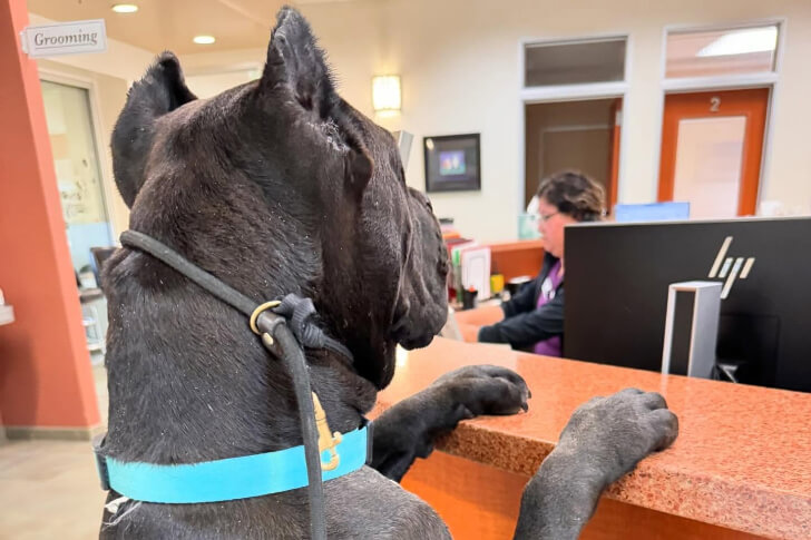 As they stepped into the clinic, Nyx’s unease was impossible to miss. His muscles were tight, his deep brown eyes scanning the room like he was on high alert. “Easy, boy,” Mr. Johnson murmured, giving him a reassuring pat. The receptionist smiled warmly. “He’s a handsome one,” she said, but her kind words didn’t calm Nyx’s intense focus.